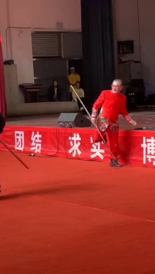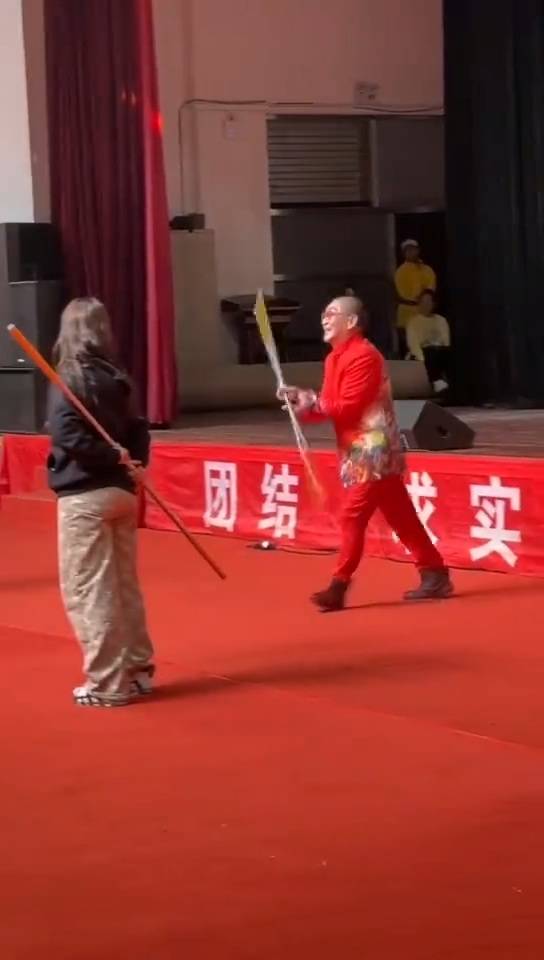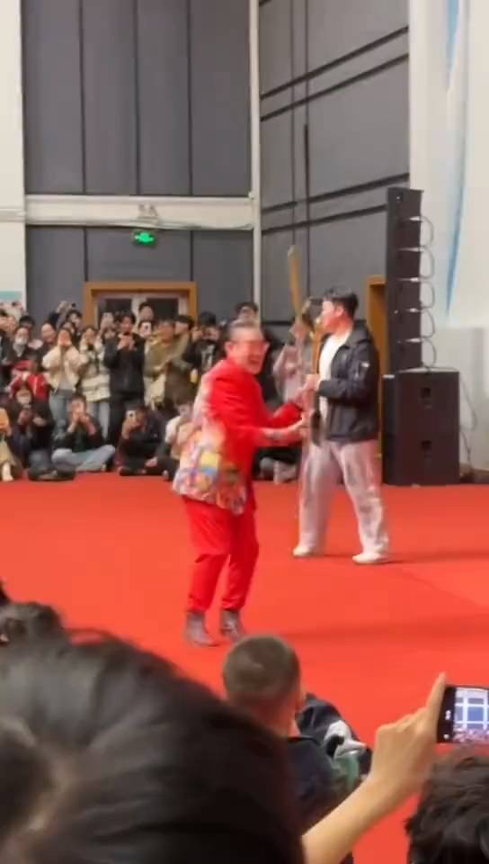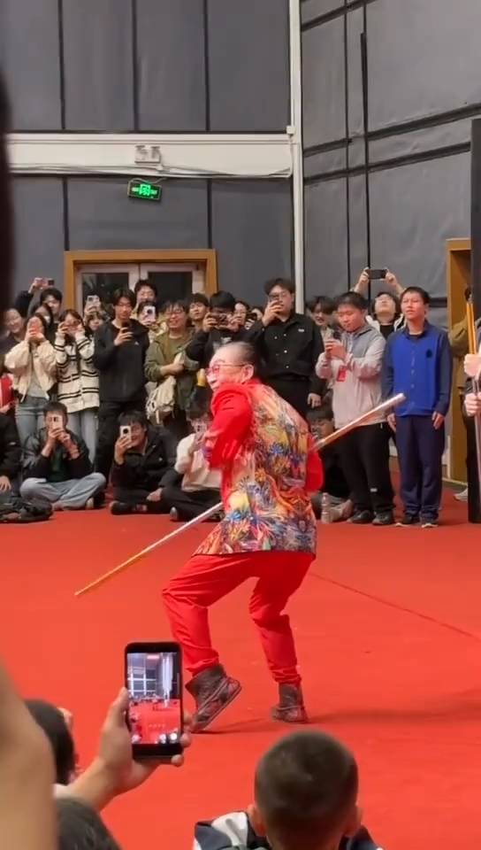 在近期的沈阳签售会、央视舞台及校园活动中,六小龄童多次即兴表演猴棍,挥起金箍棒完成劈棍、立棍、翻身棍等招式,力道扎实且身法依旧灵动。2026 年 4 月,他在内蒙古农业大学的表演中,棍影翻飞的动作全程连贯,现场观众直呼 “齐天大圣仿佛降临现实”。除了棍法,他还还原了美猴王标志性的 “火眼金睛” 凌厉目光、挠腮眨眼的猴态动作,配合 “俺老孙来也” 的经典台词,瞬间唤醒观众对 86 版《西游记》的视觉记忆。此前在绍兴文理学院开学典礼上,他的表演就曾让在场新生欢呼沸腾。