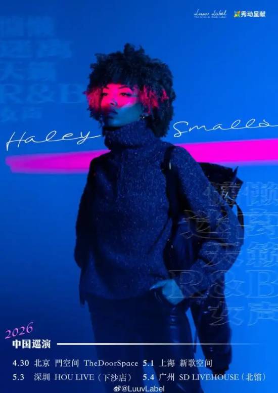 主办方公布的行程显示,Haley Smalls的中国巡演安排为:4月30日北京、5月1日上海、5月3日深圳、5月4日广州,北京站为首站。4月17日,主办方在微博发文称:“Haley Smalls北京站开票!慵懒迷离的天籁R&B女声Haley Smalls即将开启中国巡演,用最柔软又最有力量的声音,带你沉入她的音乐世界。”