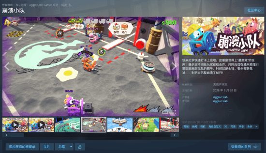 版本更新 · 2026年4月24日 — 开发商 Aggro Crab 于4月24日宣布,《崩溃小队》将于5月28日发售,登陆PC(Steam/Microsoft Store)和Xbox Series