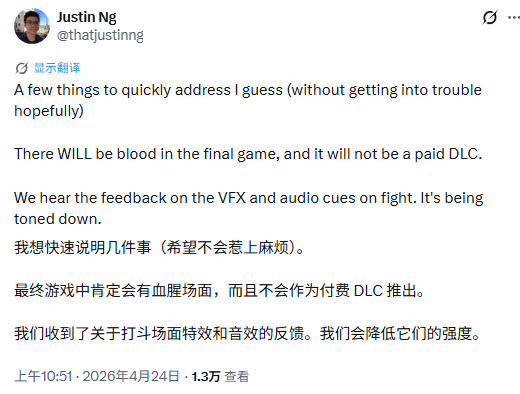 有博主发现,《黑旗RE》的演示中并没有飙血效果: