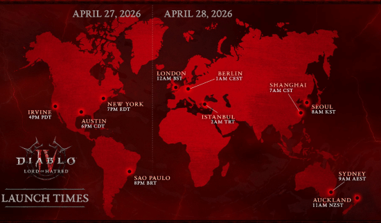 下图为《暗黑破坏神4》全新DLC《憎恨之王》的全球解禁时间,北京时间为4月28日(周二)上午 7:00。