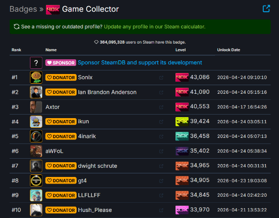 根据SteamDB最新数据统计,目前已有120名玩家的游戏库规模达到2万款以上。