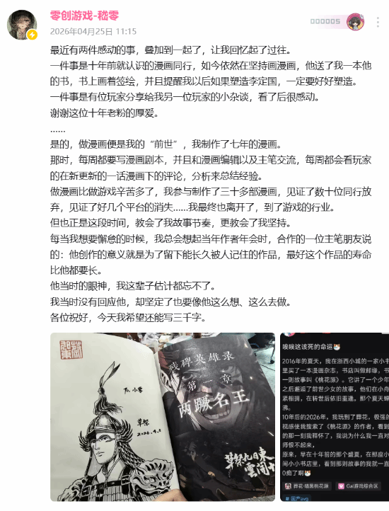 今日,制作人嵇零有感而发,发布了一段长文动态: