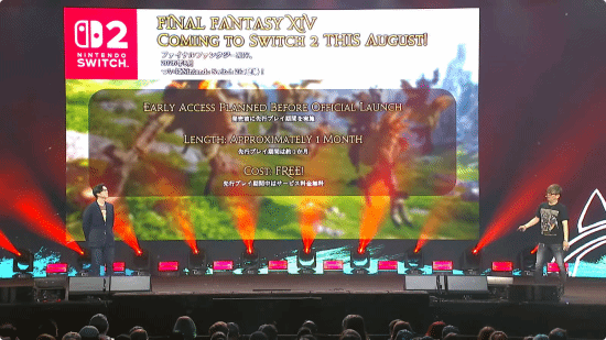 消息来自 2026 年 4 月 25 日举行的线下活动「FINAL FANTASY XIV Fan Festival 2026 in Anaheim」主题演讲。官方表示,Nintendo Switch 2 版《最终幻想14》在正式推出前,将提供约 1 个月的抢先体验期,期间玩家可免费游玩。