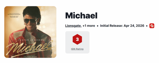 游戏资讯 · 2026年4月25日 — 狮门影业的MJ传记片《迈克尔·杰克逊:巨星之路》《迈克尔·杰克逊:巨星之路》口碑解禁时,IGN评分仅3分。 然而正式上映后轻松创下音乐传记片北美新纪录,首映票房