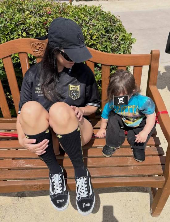 除了这张“重口味”照片,这组图集还收录了考特妮穿黑色比基尼晒太阳的辣照、两人烛光晚餐的甜蜜合影,以及他们2岁儿子洛基·特林的多张珍贵日常。在一张照片中,考特妮坐在长椅上,旁边就是她的小儿子;另一张照片里,母子俩正在迪士尼乐园骑旋转木马。