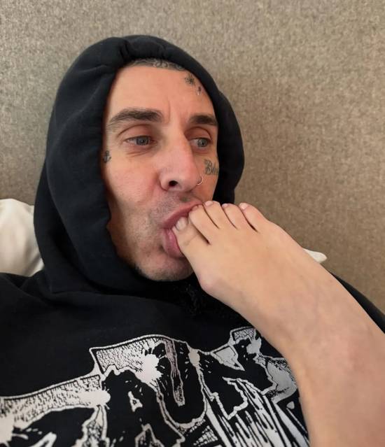 4月18日,Blink-182鼓手在Instagram上发布了一组照片,为妻子庆祝47岁生日。其中一张床照里,他正吸吮着妻子的脚趾,尺度之大让网友直呼“太炸裂”。