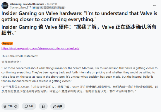而据外媒报道,至于 Steam Machine 的情况,目前消息称 Valve 已经接近做出最终决定。公司内部一直在反复权衡定价策略,以及是否愿意在短期内以亏损方式销售硬件。目前尚不清楚最终结论,但普遍认为正式公布发售信息的时间已经不远了。