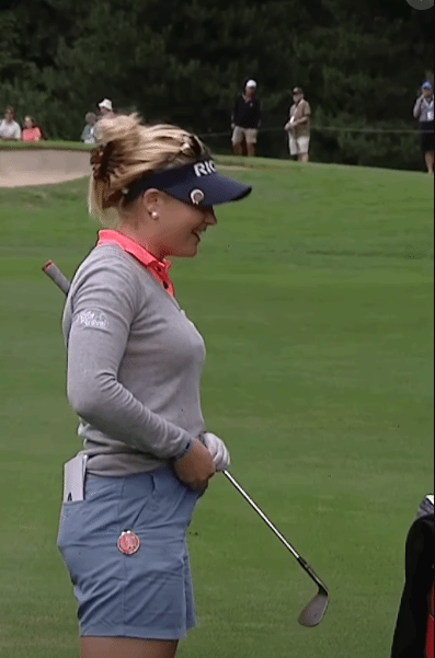 “我心想:‘糟了,这可是直播。’”她回忆道。好在摄影师通过无线电联系另一名摄影师,找来别针帮她临时固定裤子,才得以完成比赛。最终她以低于标准杆9杆完赛,并列第七名。