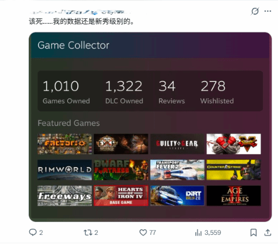 列为诸公,你们steam有多少游戏收藏?欢迎在评论区讨论。