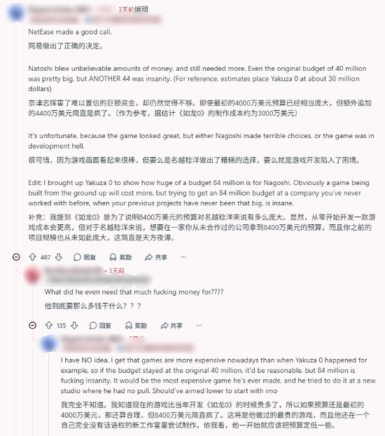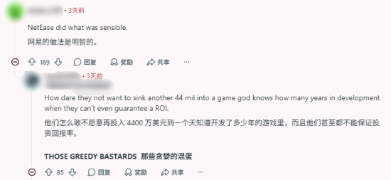 这一系列事件在海外Reddit平台也引发了网友热议,其中相当多的玩家的态度都偏向于支持网易,并指出名越工作室的项目管理确实存在问题,成本开支过于巨大: