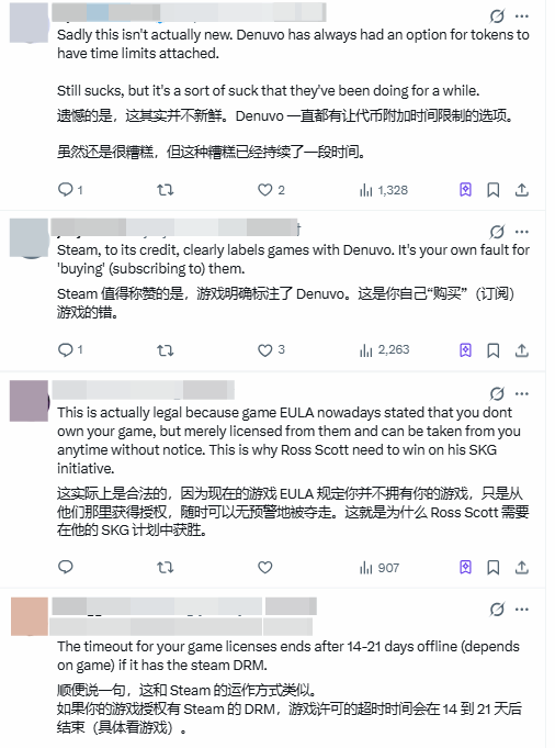 相比早期版本的Denuvo(通常仅在重大系统变更时才需联网验证),这种基于固定周期的验证模式显然要严格得多。而且最令玩家不满的是,这一核心限制并未在Steam商店页面、EULA协议或购买环节中得到明确说明。