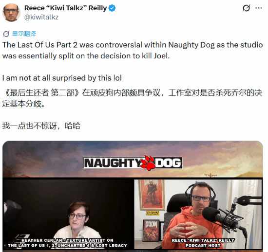 游戏资讯 · 2026年4月27日 — 近日,曾参与《最后生还者》系列开发的前顽皮狗美术师Heather Cerlan,在接受知名记者Kiwi Talkz的采访中公开爆料,《最后生还者2》中乔尔死亡的