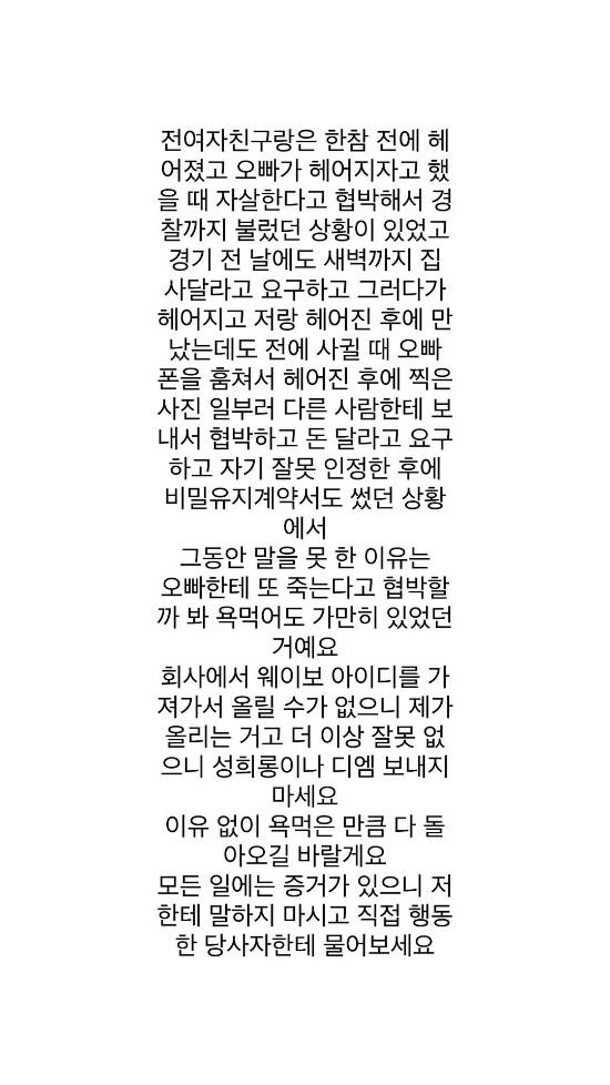 今日,Rookie现任韩国女友首度发长文否认出轨一事,言辞控诉小钰:称二人早已分手,小钰当初甚至以自杀威胁Rookie,还要求买房等等。