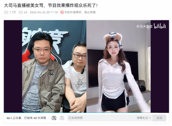 在连麦刚开始时,对方女主播的直播间就瞬间被大司马的粉丝攻占。粉丝们不停发弹幕,怂恿女主播直接开骂,想看大司马当众难堪。大司马见状非但没有生气,反而鼓励女主播从弹幕里挑几个真的骂。