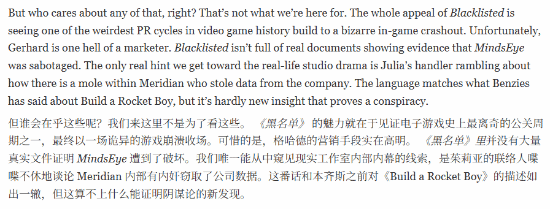 总的来说,《Blacklisted》更像是一场拙劣的“公关反击”,内容空洞、质量低下。如今看来,真正“拖垮”这家工作室的,或许正是其自身的决策与管理。
