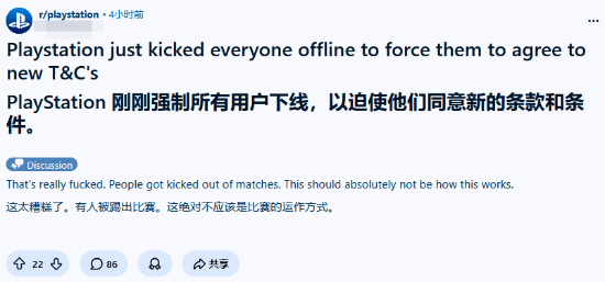 在Reddit上,一些玩家反馈突然遇到了奇怪的网络状况,导致PSN账号被登出。而随着类似的帖子越来越多,玩家们逐渐意识到,这并非个例。