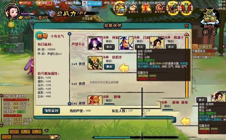 无限元宝 金钱。伙伴可以招募八仙。完美任务。铸造修炼,画片非常美观。一键端运行。非常不错。
