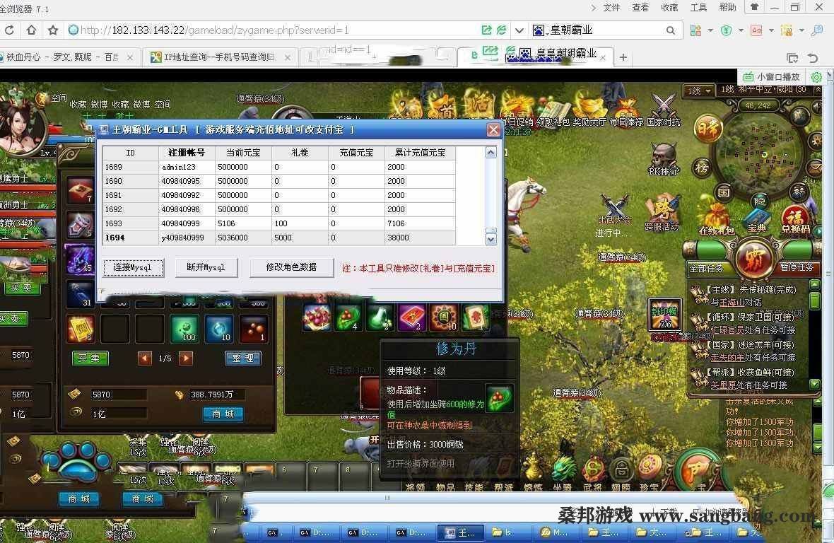 1.增加GM工具(直接给角色充值元宝礼卷)