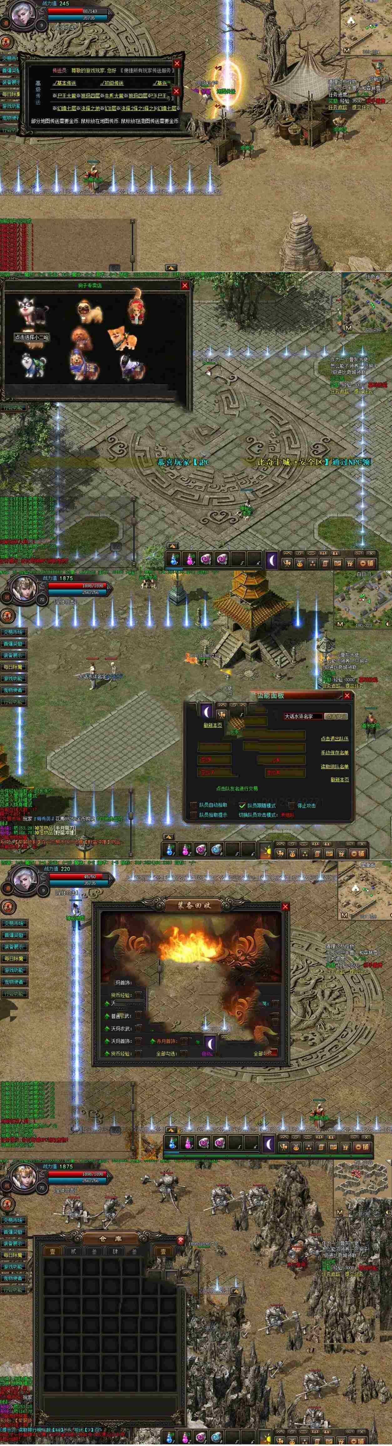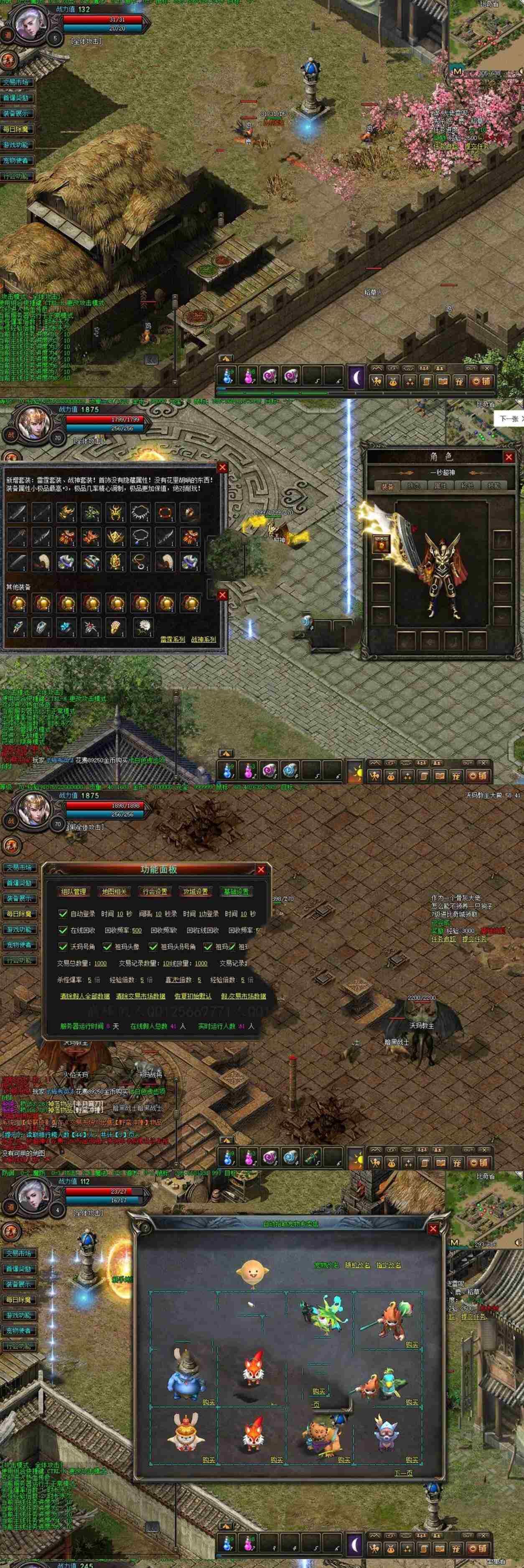 ③变态装备系统:设置了几乎所有装备的变态版,一直到赤月装备和赤月武器衣服,每件装备都有不同的被动属性,其中一些还可以往上升级,只有带◆◆颜色名字精怪才能爆出。