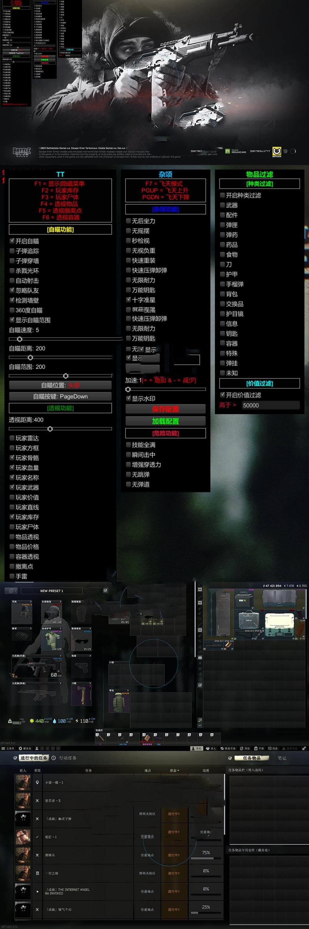 亲测端游【逃离塔科夫】硬核射击类似吃鸡 网游单机版免虚拟机 带内置辅助可调节ai难度 视频教学一键启动 游戏截图: 塔科夫离线版 声明:本站所有文章,如无特殊说明或标注,均为本站原创发布。任何个人或组织,在未征得本站同意时,禁止复制、盗用、采集、发布本站内容到任何网站、书籍等各类媒体平台。如若本站内容侵犯了原著者的合法权益,可联系我们进行处理。