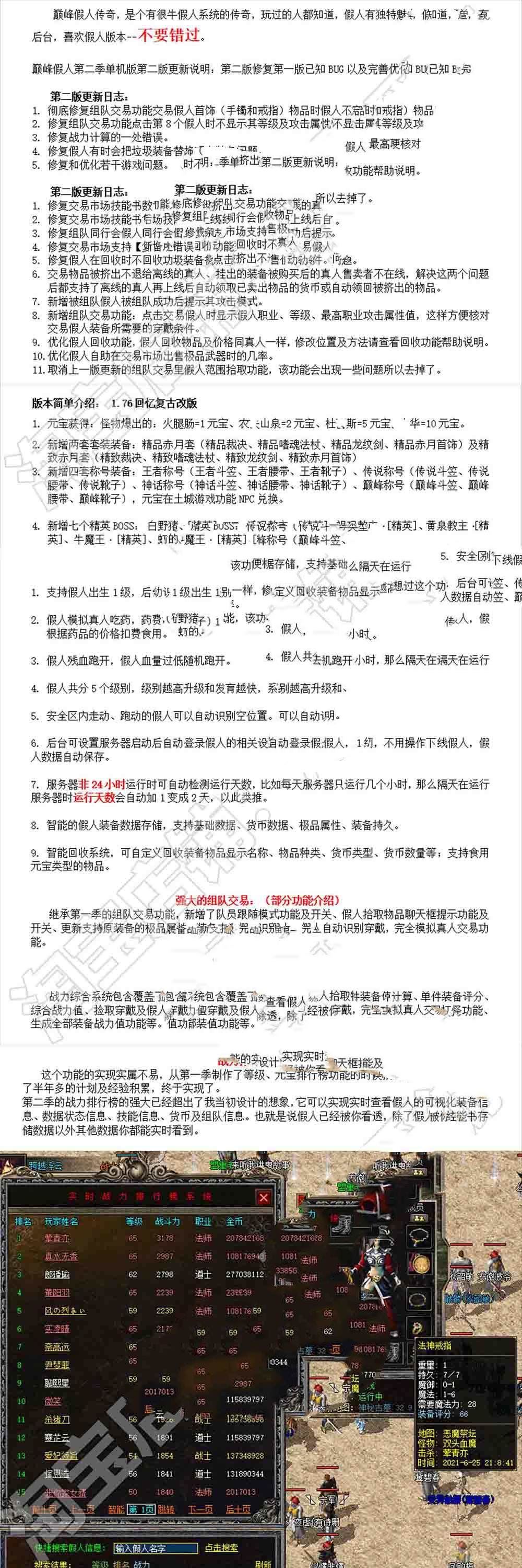 热血传奇单机版V176怀旧复古智能假人攻沙陪玩单机一键安装GM后台免虚拟机