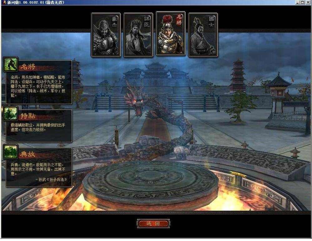 《新问鼎》是一款经典2.5D 角色扮演类,回合制网络游戏。以中华数千年历史文化为游戏背景,涵盖了各时期近万人的历史武将系统。在游戏中,姜子牙、孔子、项羽、赵云、诸葛亮、张三丰、武松、成吉思汗、纪晓岚等历史名人悉数登场,游戏过程中可以体验到驾驭名将、争战天下的顶级乐趣。战斗时玩家可运用数百种绚丽、实用的技能,配合多变的战斗策略,运筹帷幄,决胜千里。充分展现玩家的智慧和实力,重现“以少胜多、以弱胜强”的经典战役。