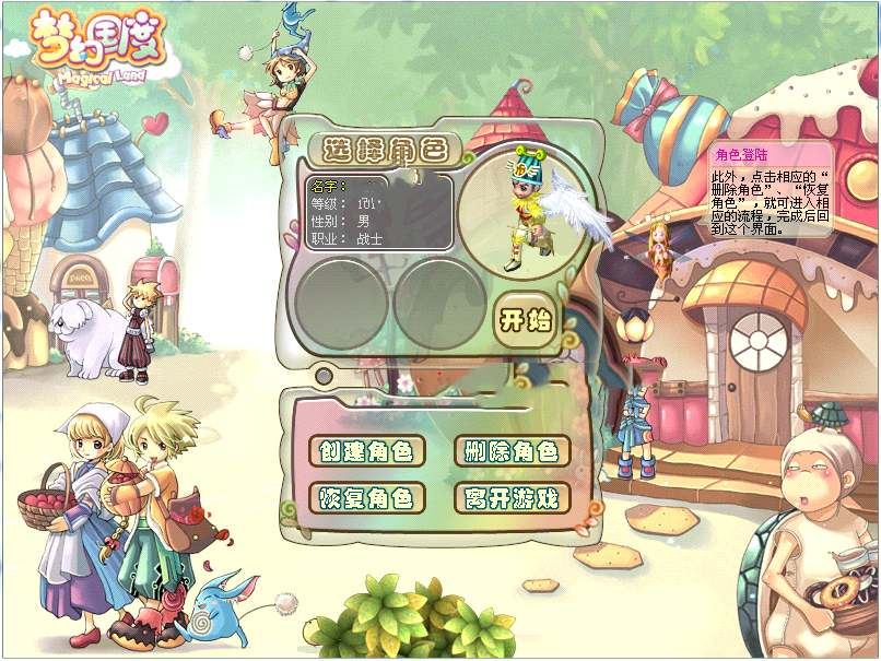 梦幻国度新版,只支小屋挖宝天空之城花园餐厅保保箱120级等所有功能。