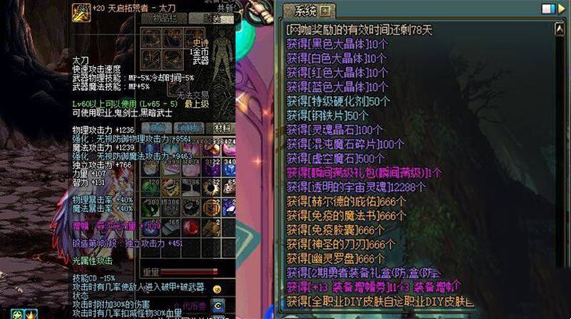更新15:史诗克隆属性微调30四维,6件成套,心悦3光环微调20四维更新16:异界3任务获得特技恶魔结晶+2个