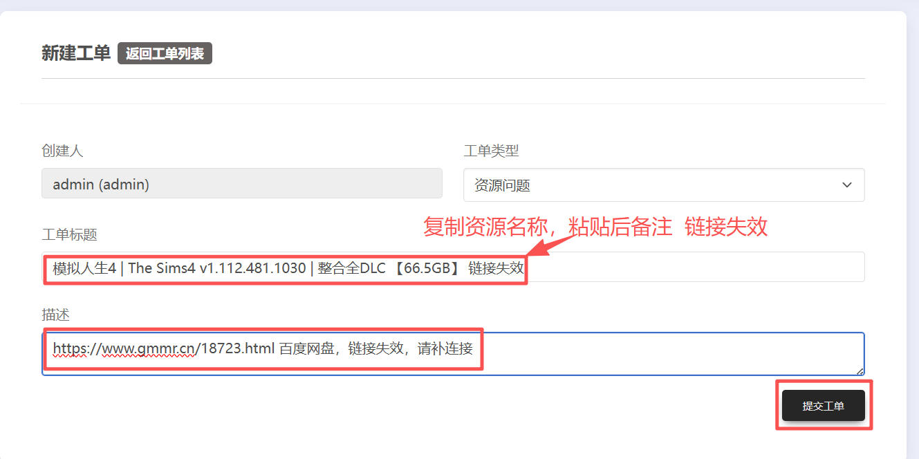 想玩什么单机游戏?想让什么游戏更新?哪个资源链接失效了?关于资源的一切问题,通通在会员中心提交工单,